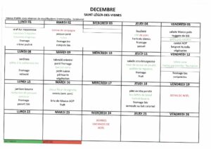 Menu Cantine DECEMBRE 25